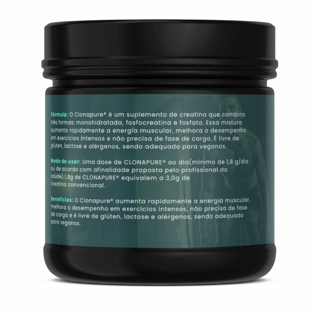 Suplemento de creatina Clonapure 95G com absorção 20x mais rápida. Aumenta energia, força muscular e foco. Ideal para treino e disposição diária.
