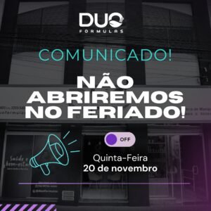 Caso as condições não sejam atendidas, a DUO Fórmulas se reserva o direito de não aceitar a devolução e reenviar o produto ao cliente, podendo haver nova cobrança de frete.